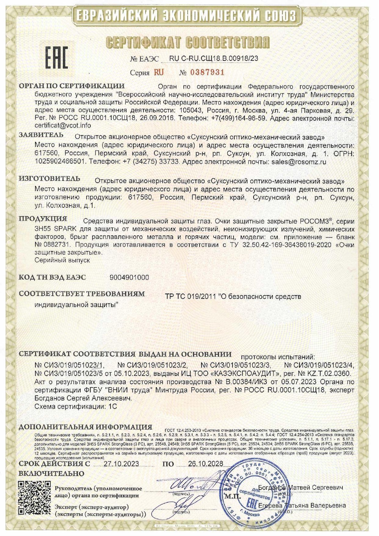 Очки защитные закрытые ЗН55 SPARK CONTRAST StrongGlass (25557)