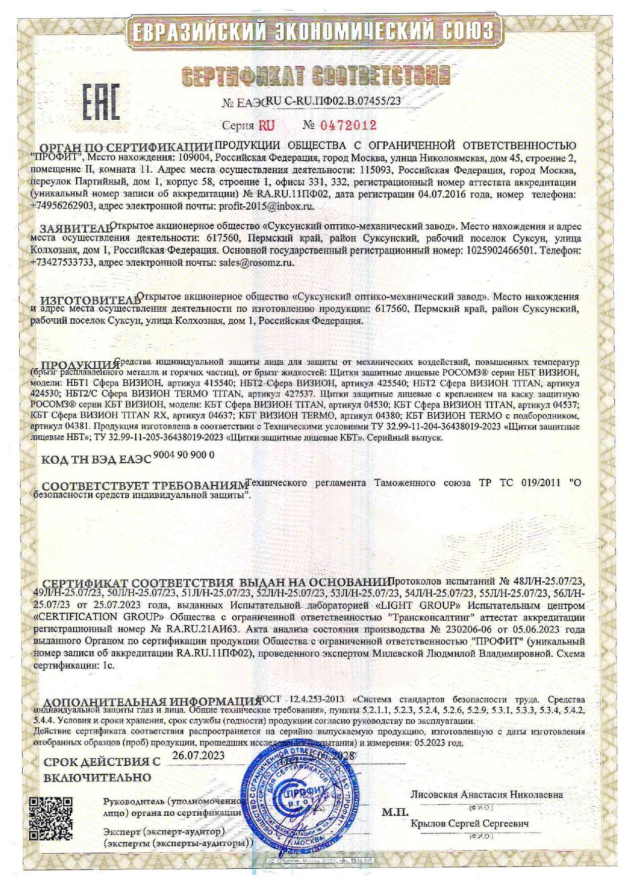 Щиток защитный КБТ Сфера ВИЗИОН TITAN (04530)